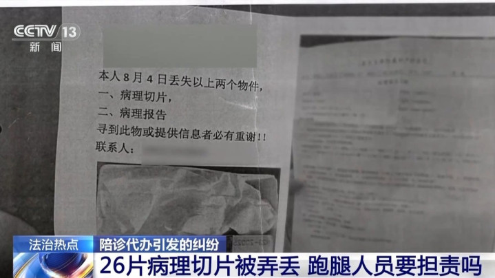 北京市第三中级东说念主民法院法官助理雷悦:她收到病理切片之后是和磋议的问诊材料放在沿路。因为李女士是专门从事陪诊代办业务,是以她家里会有许多交付给她的病历贵府,她说她把这些材料王人沿路放在家门口箱子里,但不知说念为什么有一天她思要去拿病理材料挂号的手艺,却发现她再也找不到病理切片。