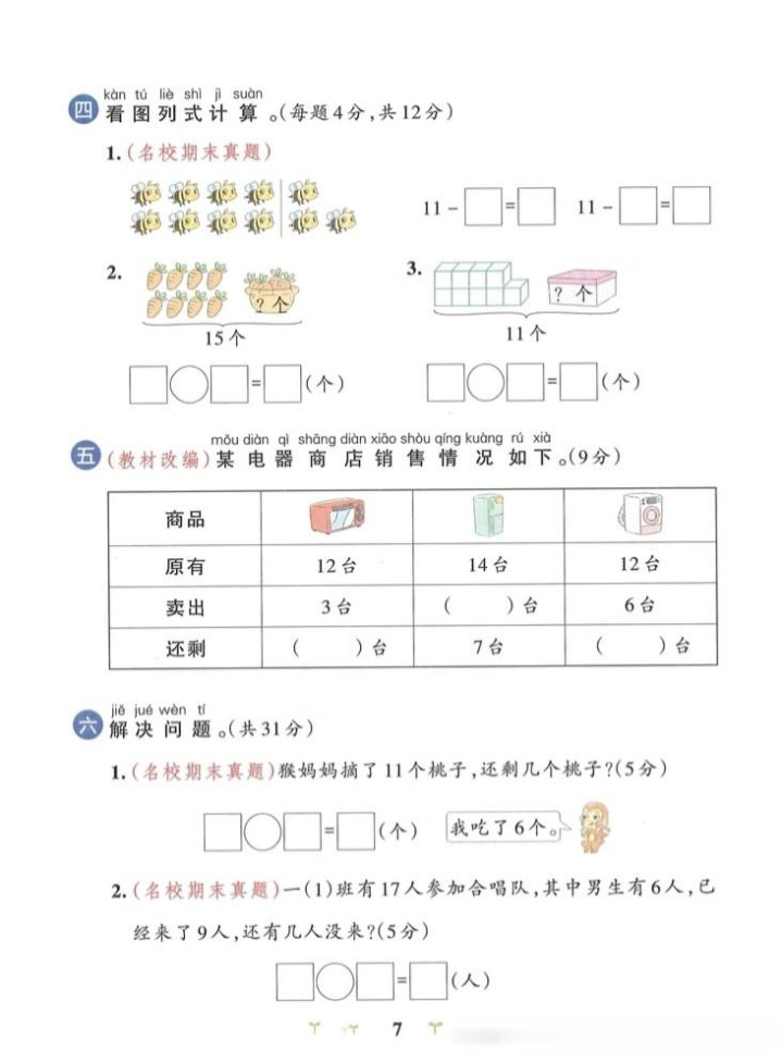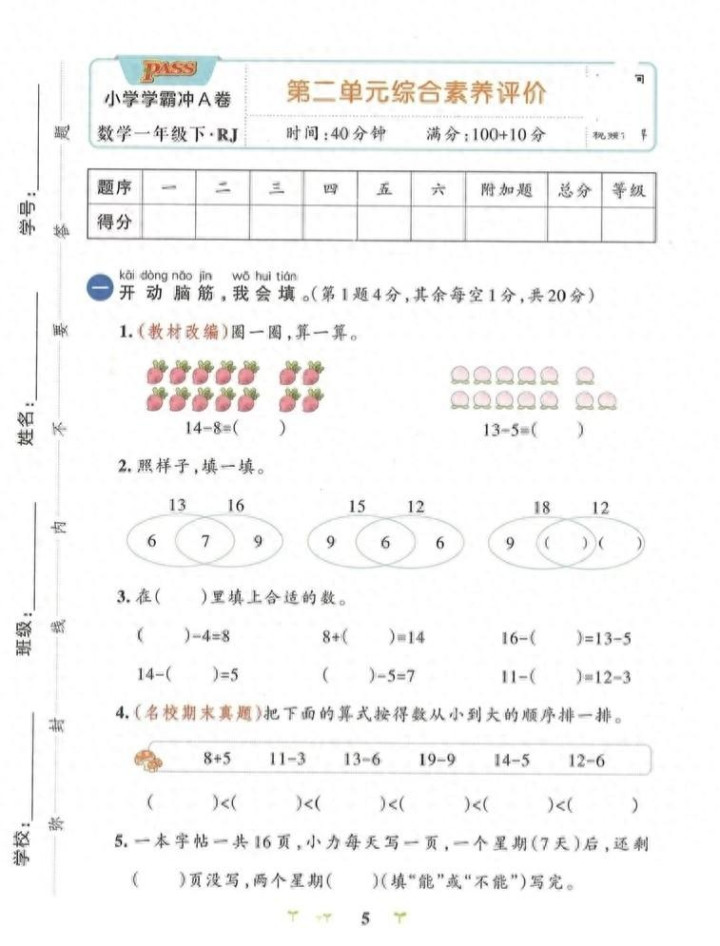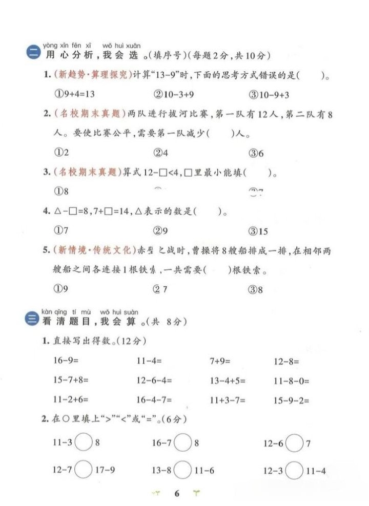 4、先永别算出算式的成果并标示,然后把柄成果的大小,按要求将对应的算式填入空中。