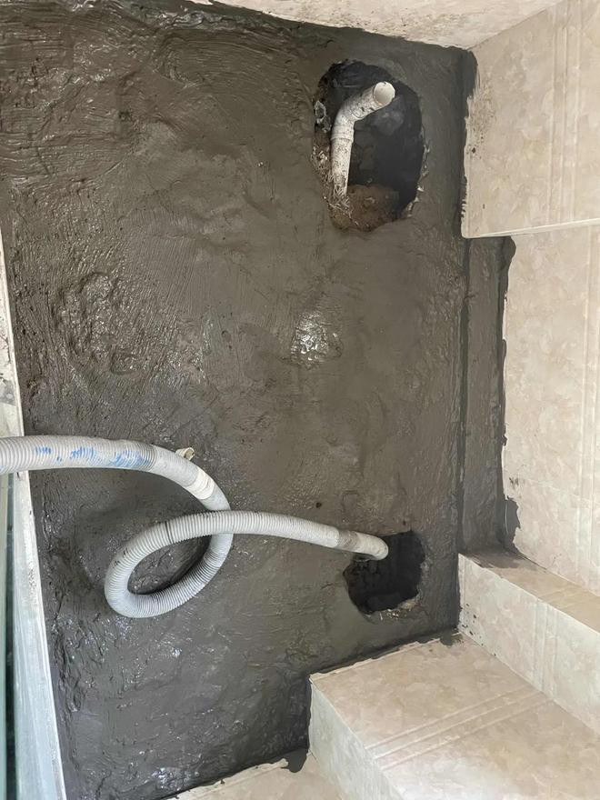 3、买PVC延迟管,延迟下水口,按地漏高度截取后插入下水管,在外面一圈涂刷堵漏 王,边角科罚好才不会渗水。