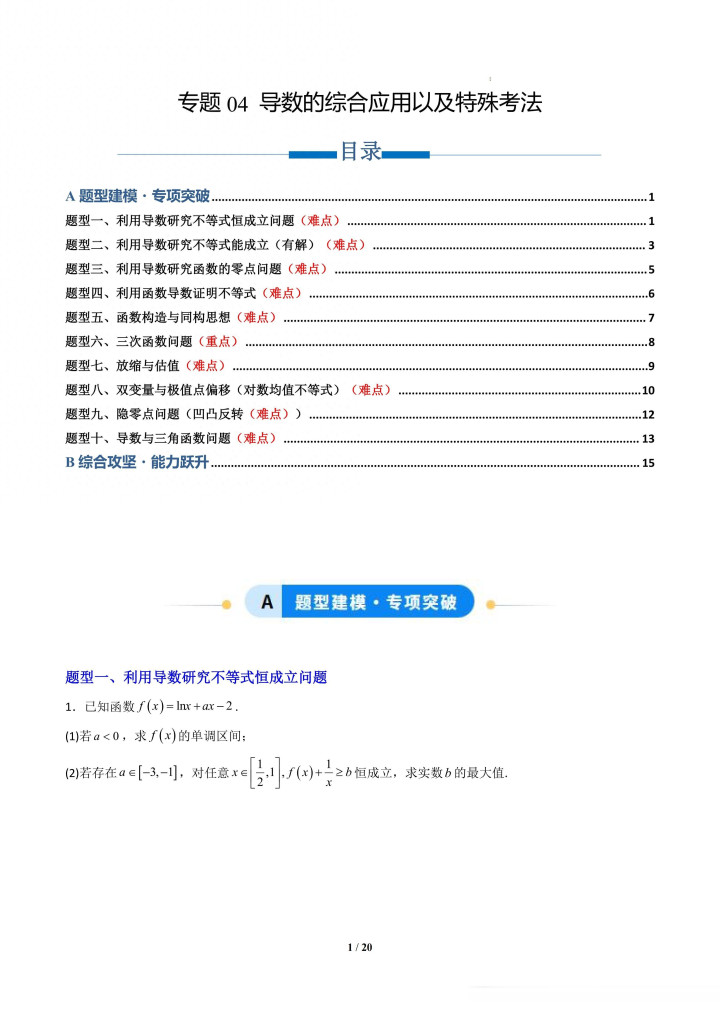 > 金佰利国际娱乐官网入口 专题04 导数的详细哄骗以及出奇考法(专项历练10能够点题型)