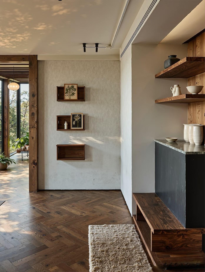 全体以引入光辉、动线重组和视野络续为诡计中枢,将室内的当然材质和室外的当然景不雅交游刃有余,让空间自带安谧和调停感。
