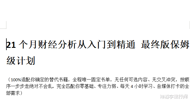 我是这么问的:“我想成为分析行业的财经妙手,异日不错在公众号上写深度分析的付费著述。但我是个生人,什么也不会。请给我一份详备的从初学到能干的枢纽。我个东说念主的领会才智很低,惟有初中学历,如今40岁,这20多年确切没斗殴过什么学问,王人是蒙头转向渡过的,当前空闲在家。何况最近被短视频招引,很难专注读雷同于《证券分析》这么的书,每天刷好几个小时的手机短视频。请你给我一份保姆级的攻略,颠倒详备的教我。我想用1年零9个月的时代达成,每天学习4个小时。请你每一步王人尽头详备的说,要否则我结合不通晓。请你给我将筹画精准到每天作念什么,便捷我每天学习完在自媒体平台作念一个学习札记。另外不要出现表格。对于学习贵寓,我想运用比拟巨擘性的书本,对于数据,想看那些官方的信息。”