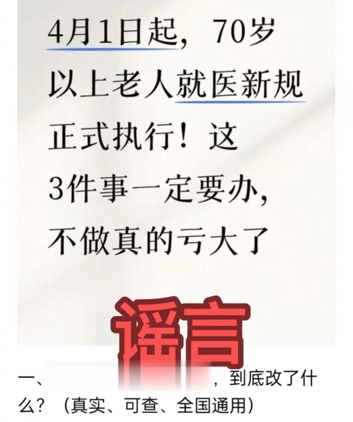 “4月1日起老东说念主看病有新规定”是为了博眼球
