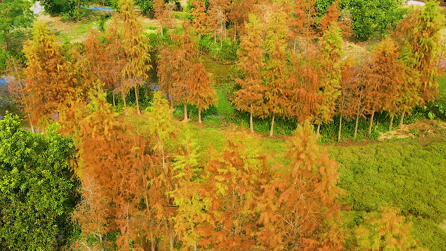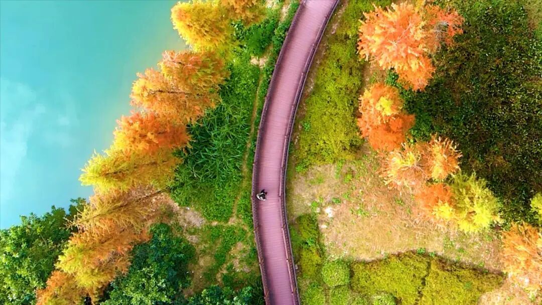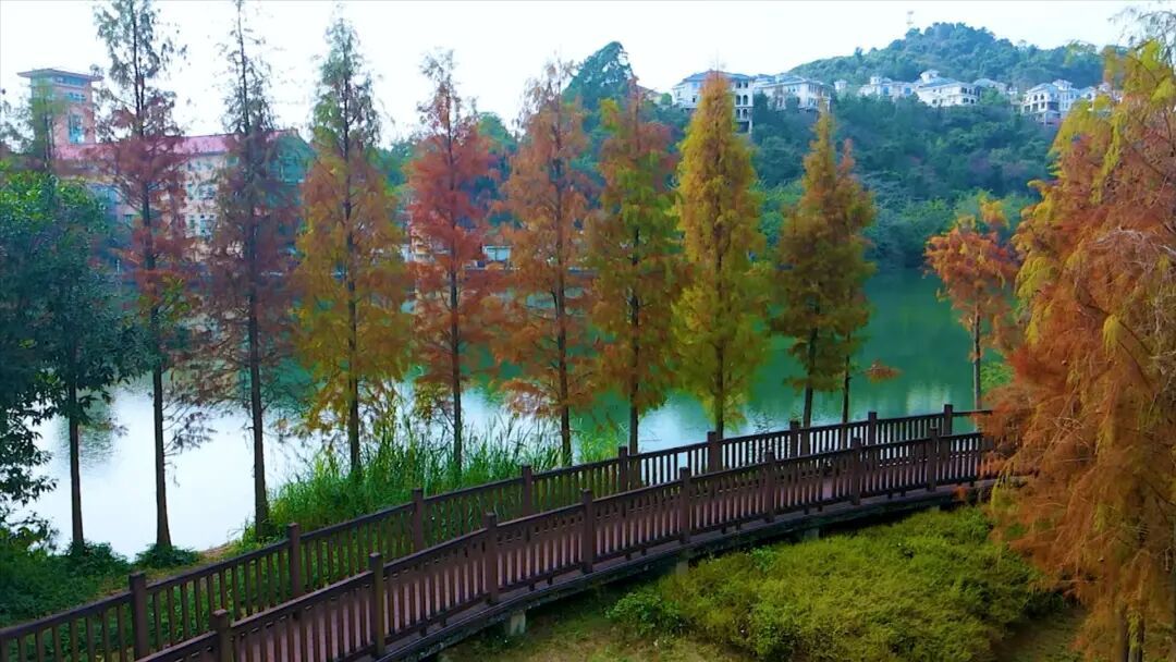 流溪温泉广场的水杉则悄然披上焦糖色外套,反照在碧绿的流溪河中,浅深交错的红在光影间膨大,宛如大当然打翻了调色盘,暖和又纵欲。