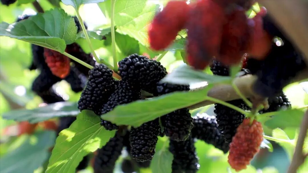 良口镇的创鲜果桑园是采摘优选,桑树搭起绿色拱廊,采摘期为9月至次年5月,颗颗满盈多汁,现摘现吃满口清甜,还能亲手制作桑葚果酱、桑葚干当伴手礼。