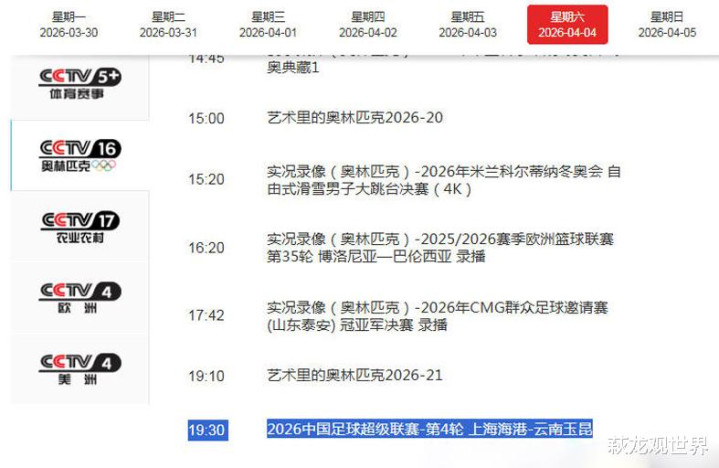 海外比赛日收尾,中国球迷将眼神飘荡到国内联赛!北京技能4月4日晚19:35,2026中超联赛第4轮,上海海港镇守上汽浦东足球场迎战云南玉昆,央视奥林匹克频说念CCTV16将从19:30运行直播。一个是主场作战的卫冕冠军,一个是中超二年岁生,比赛还有悬念吗?有,且悬念极大。