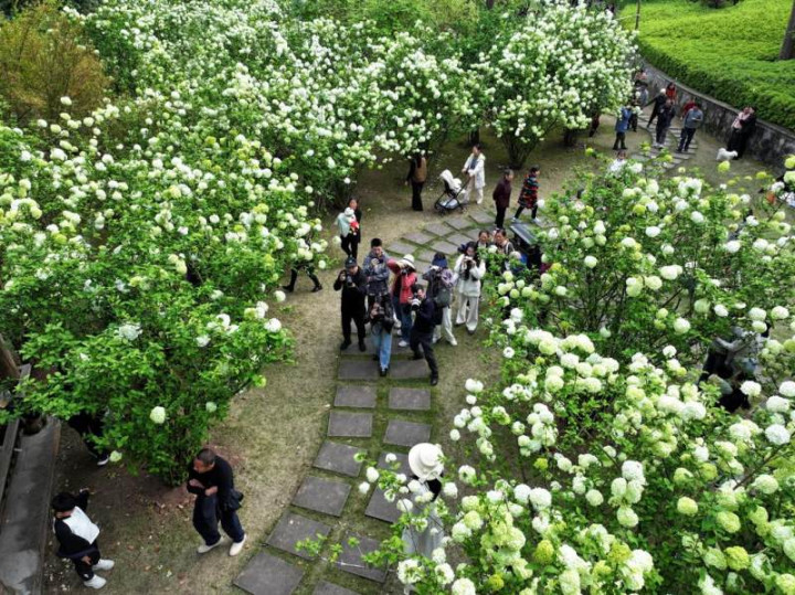 近日,重庆市荣昌区迎宾儿童公园内中华木绣球迎来盛花期,微风拂过花影轻摇,满目都是诗情画意。