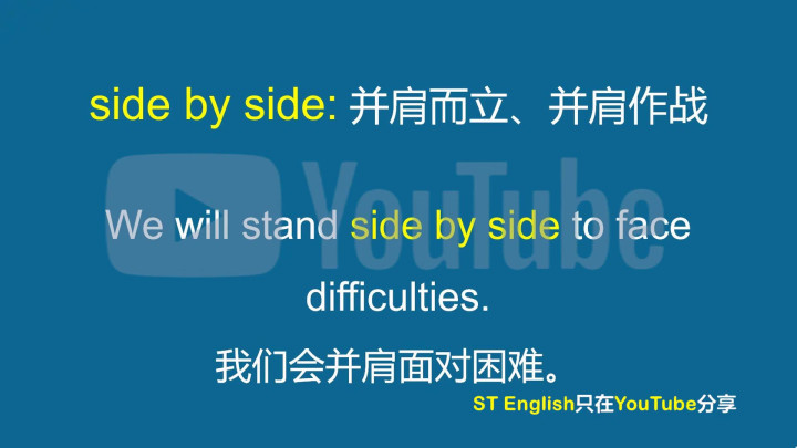 针对这个短语来看一个例句比如说:we will stand side by side to face difficulties.咱们会并肩靠近禁锢,咱们都认为手脚一个举座不错作念bigger、more exciting、bolder things than any of us could do individually,so that's how we try to look at it.更大、更令东谈主兴隆、更踊跃的事,这好过咱们任何一个东谈主单打独斗,这便是咱们看待这件事的神色。