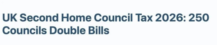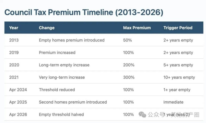 字据《2023年城市提高与重建法案》,英格兰各地当地政府从2026年4月1日起,可对空置非凡一年的房产征收100%的市政税附加费,即在平素税额基础上翻倍征收。