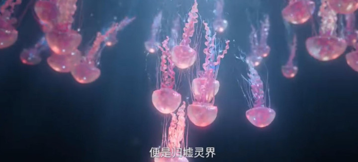 故去东说念主类的灵魂被殊效师作念成了近似水母的样式,因为剧中的灵界是在东海海底,是以故去灵魂的外型是水生生物的样式也很合理。