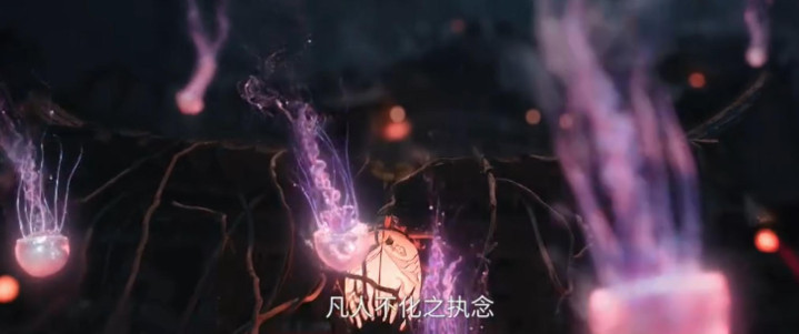 比如一起首,有段战场上死者的执念灵魂飞入归墟灵界的画面。