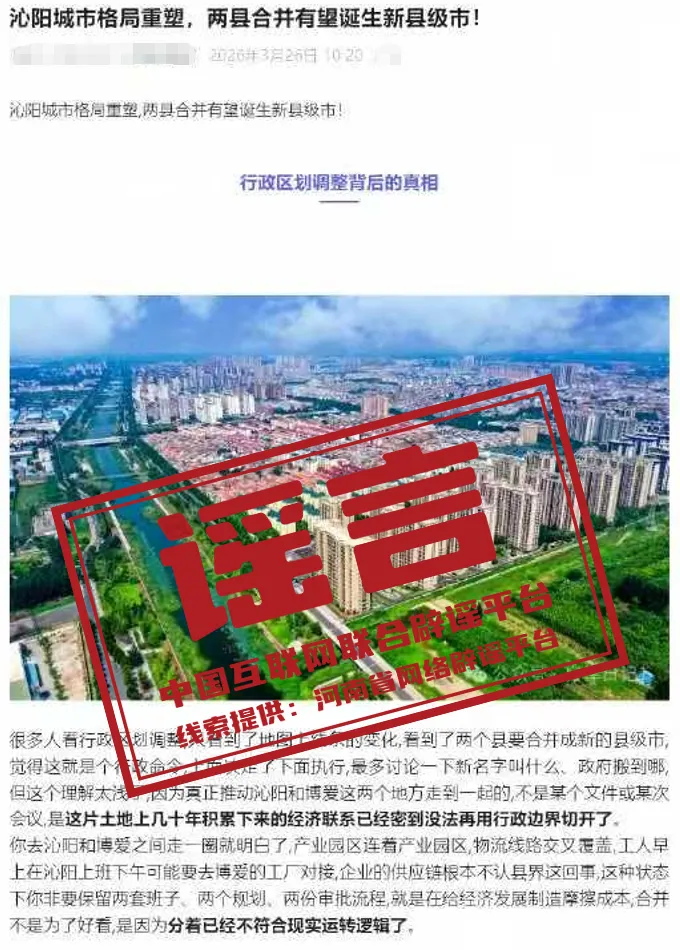 辟谣“河南焦作两县吞并配置新的县级市”乌有